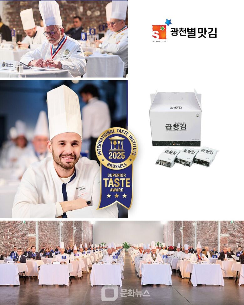 (문화뉴스 박선혜 기자) 프리미엄 김 전문기업 별식품㈜이 대표 제품 '곱창식탁 조미김'으로 최근 벨기에 브뤼셀에서 열린 2025 국제 식음료 품평회에서 최고 등급인 3스타(★★★)를 수상하며 세계 미식 전문가들로부터 '눈에 띄는 탁월한 맛(Sensational Taste)'을 공식 인정받았다.