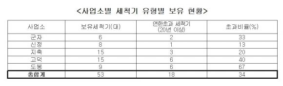 도봉사업소는 보유세척기 9대 중 6대, 고덕은 15대 중 6대 등 상당수가 내구연한이 지난 노후 세척기임