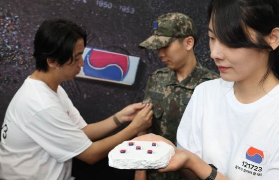 국가보훈부와 국방부유해발굴감식단, 한화 방산3사 등은 6.25전쟁 75주년을 맞아 25일 서울 중구 서울역에서 '121723 끝까지 찾아야 할 태극기' 캠페인을 펼치고 있다. ‘121723’은 6·25전쟁에서 목숨을 잃었지만 아직 가족의 품으로 돌아오지 못한 전사자 12만1723명을 뜻한다.