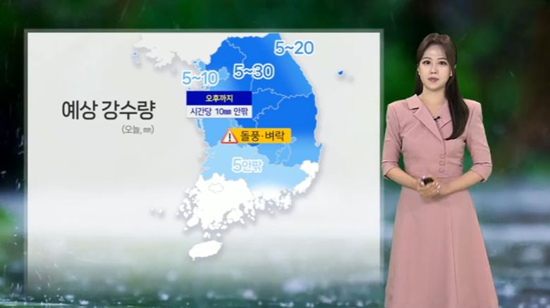 다만, 중부는 오늘 오후까지 시간당 10㎜ 안팎의 강한 비가 집중되겠고, 돌풍과 벼락이 동반될 수 있겠습니다.