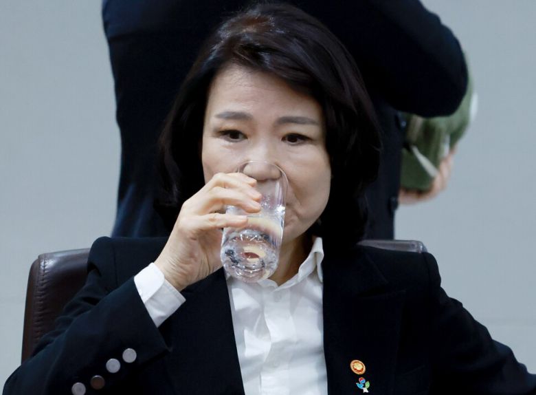 이진숙 방송통신위원장이 24일 서울 용산 대통령실 청사에서 열린 국무회의에 참석해 물을 마시고 있다. 연합뉴스 |