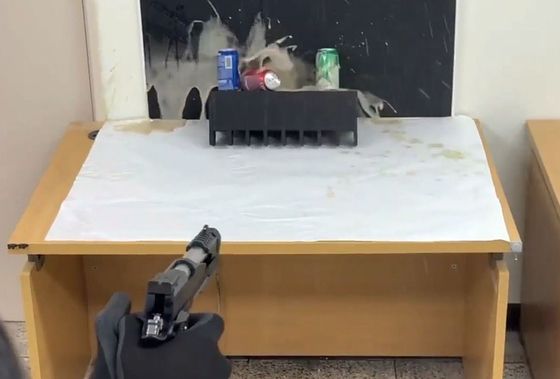 모의총포 발사에 터진 음료수 캔. 사진 서울경찰청 |