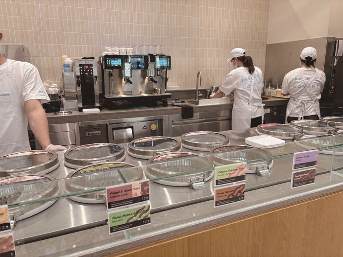 모든 유제품은 국내산을 사용한다. 원료는 국산 아카시아꿀, 프랑스산 최고급 라즈베리 퓨레, 이탈리아산 100% 피스타치오 페이스트 등 프리미엄급이다. 유지방 비율은 최대 17%까지 높였다. 시중 제품의 유지방 비율이 10% 초반이라는 걸 감안하면 상당히 높은 수치다. 반면, 평균 공기 함량은 기성품의 절반 수준인 40%까지 낮춰 밀도 있는 식감을 완성했다.