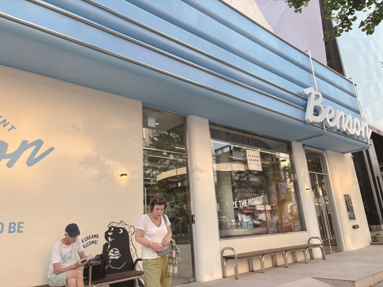 유통망도 잘 갖췄다. 플래그십 스토어(브랜드를 상징하는 매장)인 1호점은 벤슨의 '프리미엄 포지셔닝'을 잘 보여준다. 매장 규모는 전용면적 795㎡(약 241평)로 지하 1층부터 지상 2층까지 3개층으로 운영 중이다. 지하 1층은 아이스크림 설비와 제조 과정을 직접 볼 수 있는 체험형 공간 '크리머리 랩(Creamery Lab)'으로 꾸몄다.