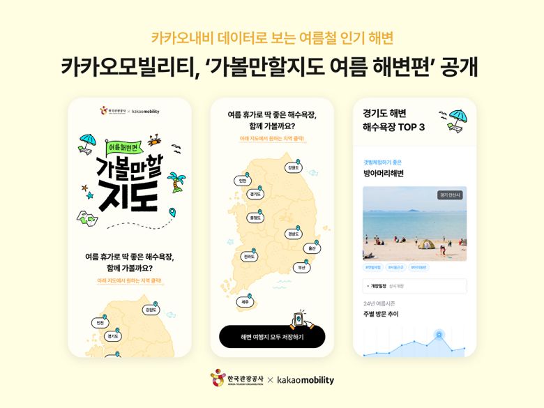 [아이뉴스24 정유림 기자] 카카오모빌리티는 여름 휴가철을 맞아 한국관광공사와 카카오내비 데이터 기반의 '가볼만할지도 여름해변편'을 25일 공개했다.
