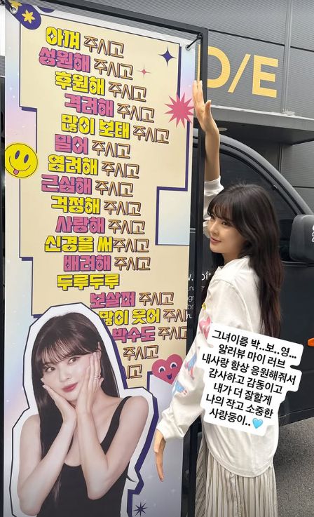 또 다른 사진에서는 간식차 배너에 적힌 문구를 인용하며 “그녀 이름 박보영.. 알려뷰 마이 러브. 내 사람 항상 응원해줘서 감사하고 감동이고.. 내가 더 잘할게 나의 작고 소중한 사랑둥이”라고 덧붙여 두 사람의 돈독한 우정을 과시했다. thunder@sportsseoul.com