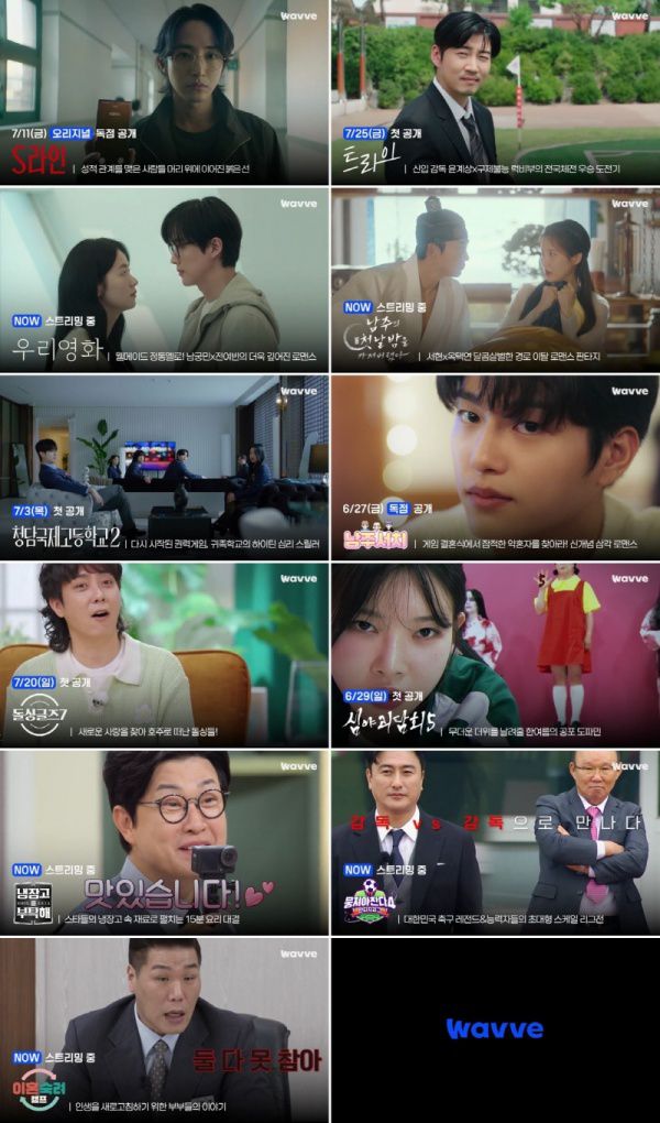 [스포츠투데이 정예원 기자] OTT 서비스 웨이브(Wavve)가 7월 '먼슬리 웨이브' 영상을 통해 신작 라인업을 공개했다. 웨이브의 오리지널 작품을 비롯해 취향별로 골라 볼 수 있는 다양한 장르의 드라마, 이용자들의 꾸준한 사랑을 받는 '믿고 보는 예능'까지 풍성한 콘텐츠가 출격을 준비하고 있다.