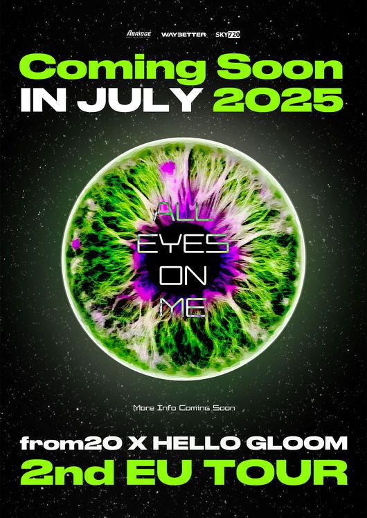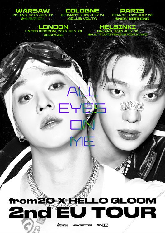 지난 24일 웨이베러(WAY BETTER) 공식 SNS를 통해 프롬트웬티와 헬로글룸의 두 번째 유럽 투어 ‘ALL EYES ON ME(올 아이즈 온 미)’ 포스터가 공개됐다.