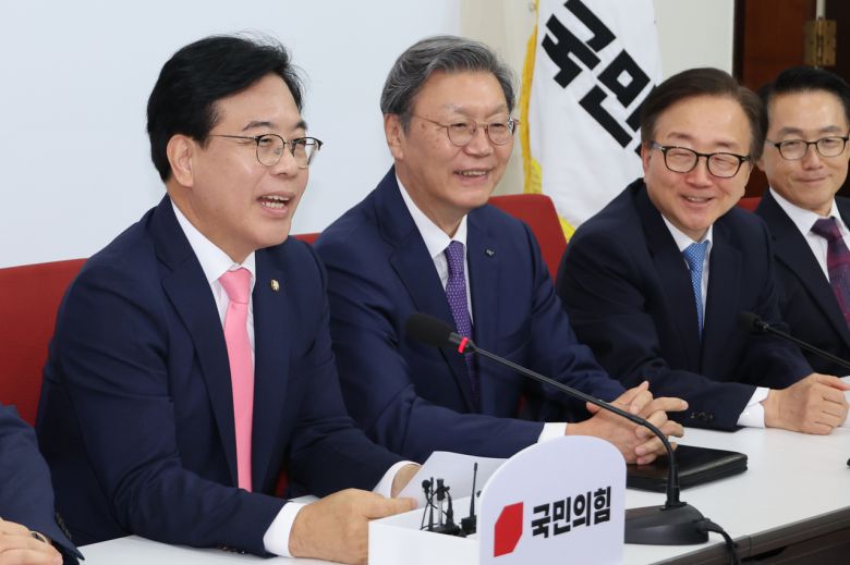 [헤럴드경제=김해솔 기자] 송언석 국민의힘 원내대표는 25일 “더불어민주당이 추진하고 있는 상법 개정안이 통과된다면 우리 자본 시장은 선의의 투자와 생산적 경쟁력이 위축되고 기업 경영권을 둘러싼 외국 투기 자본의 공격 대상이 될 가능성이 너무 많다”고 주장했다.