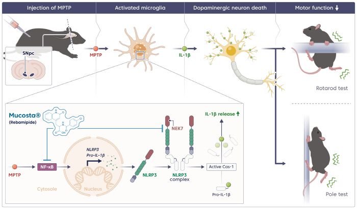 아울러, 크리스퍼(CRISPR) 유전자 편집 기술로 NLRP3 유전자가 억제된 마우스에서는 레바미피드의 신경세포 보호 효과가 줄어들어, 이 염증 경로가 핵심 기전임을 증명했다.