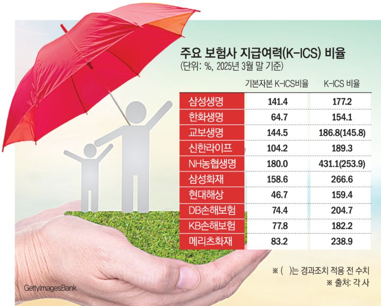 업계에서는 기본자본 킥스 비율을 50%로 관리하는 캐나다와 유럽 등 해외 주요국의 사례를 참고해 국내 기준도 이와 비슷한 수준으로 맞춰질 것이라는 관측이 나오고 있다. 올해 3월 말 대형 생명·손해보험사들의 기본자본 킥스 비율은 50%~150% 수준으로, 거론되는 기준선을 상회하고 있다. 그러나 이를 밑도는 일부 중·소형사의 경우 유상증자 등을 통해 기본자본 확충에 나설 것으로 보인다.
