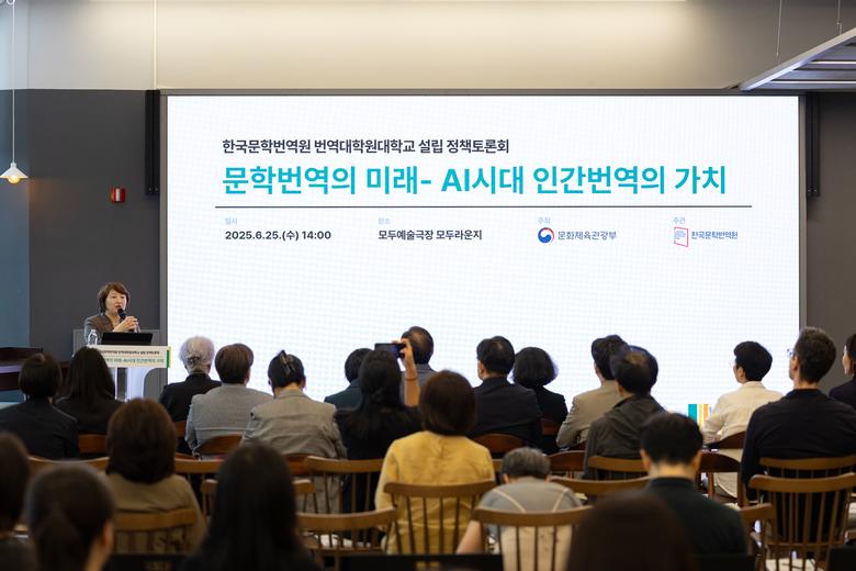 문체부와 번역원은 25일 오후 서울 서대문구 모두예술극장에서 ‘문학번역의 미래-인공지능(AI) 시대 인간 번역의 가치’를 주제로 번역대학원대학교 설립 정책토론회를 개최했다.