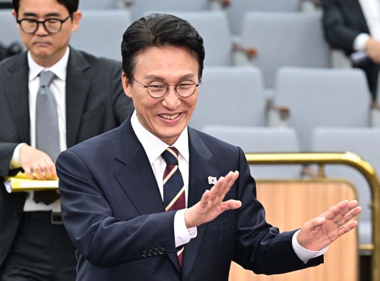 김민석 국무총리 후보자가 25일 서울 여의도 국회에서 이틀째 열린 인사청문회에 출석하며 손인사를 하고 있다. 한주형 기자 |