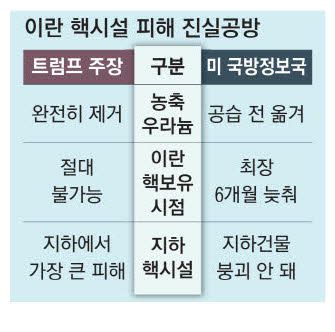이는 "이란의 핵시설이 완전히 파괴됐다"고 강조한 도널드 트럼프 미국 대통령의 주장과는 온도 차이가 있는 것이어서 주목된다. CNN과 뉴욕타임스(NYT) 등 미국 매체들은 24일 미 국방부의 정보 담당 조직인 국방정보국(DIA)이 미군의 공습과 이스라엘의 공격에도 불구하고 이란이 생산해 보유하고 있던 농축 우라늄은 파괴되지 않았다고 평가했다고 보도했다.