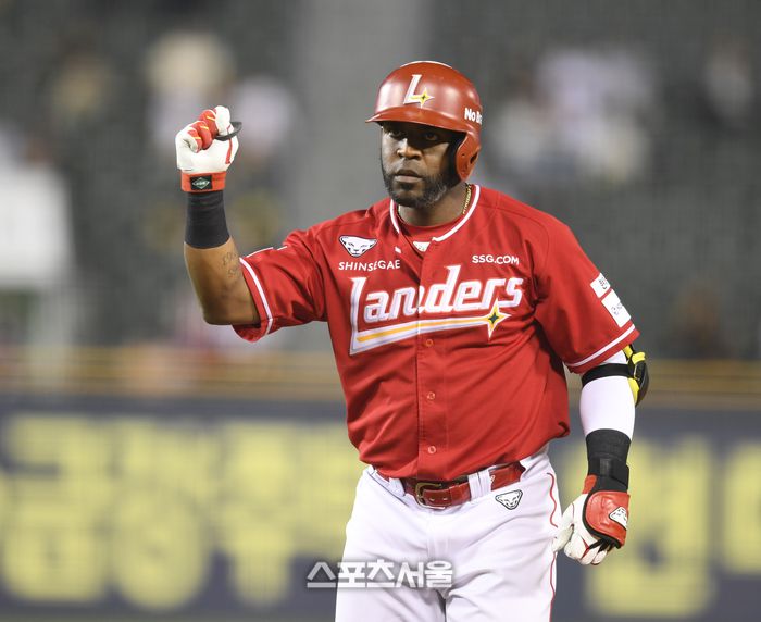 SSG 에레디아가 12일 서울 잠실구장에서 열린 2025 KBO리그 LG와 경기 6회초 2사1,3루 1타점 좌전안타를 친 후 세리머니를 하고 있다. 잠실 | 최승섭기자 thunder@sportsseoul.com |