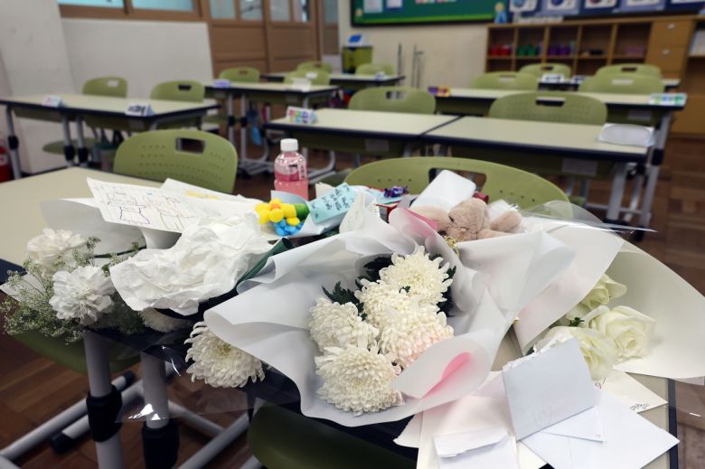 아파트 화재로 숨진 자매가 다닌 부산진구의 한 초등학교에 이들을 추모하기 위한 공간이 마련돼 있다. [연합] |