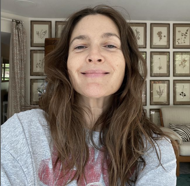 드류는 25일(현지시간) 자신의 인스타그램을 통해 흐트러진 갈색 머리카락 사이로 흰 머리카락이 자연스럽게 드러난 모습의 셀피를 올렸다. 화장기 없는 얼굴로 환하게 미소 짓고 있는 그는 회색빛이 바랜 프린팅 티셔츠를 입고, 꽃그림이 걸린 벽 앞에서 진솔한 분위기를 자아냈다.