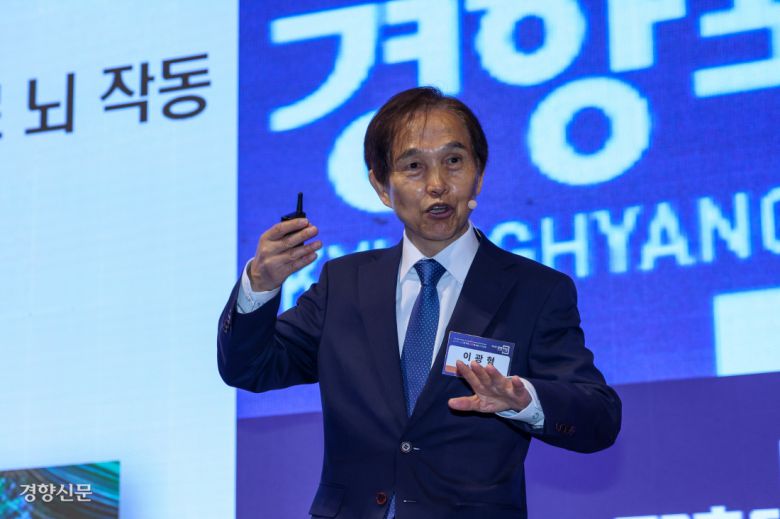 이광형 카이스트 총장이 25일 <2025 경향포럼>에서 기조 강연을 하고 있다. 이준헌 기자 heon@kyunghyang.com |