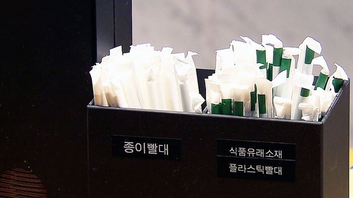 이렇게 매장에 종이 빨대, 플라스틱 빨대 두 개를 다 비치해 놓았는데요, 소비자들이 하나를 선택할 수 있도록 해놨습니다.