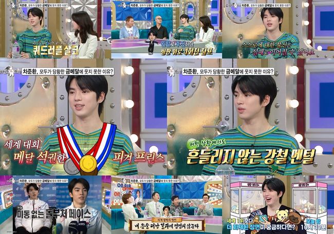 또한 차준환은 경기 점수를 확인하거나 금메달이 확정된 순간에도 무덤덤한 ‘돌부처 페이스’를 유지해 화제를 모았던바. MC 김구라는 차준환에게 최종 목표인 올림픽 금메달을 딸 때까지 기쁨을 자제하는 것인지 물었다. 이에 차준환은 “점수나 메달을 받았을 때보다 경기를 마무리했을 때 감정이 올라온다”라며 “저 순간에는 이미 제 손을 떠났다고 생각했다”라고 당시 마음을 밝혔다. 결과보다 스스로의 만족을 중요하게 생각하는 그의 진중한 태도가 또 한 번 감탄을 자아냈다.