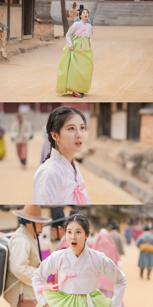 공개된 사진에는 역병촌에서 뛰쳐나온 차선책의 다급한 모습이 담겨 눈길을 사로잡는다. 아직 병색이 완전히 가시지 않은 듯 수척한 몰골로 저잣거리를 헤매고 있지만 빛나는 눈빛에서는 그 어느 때보다 절박하고 결연한 의지가 묻어나고 있다.