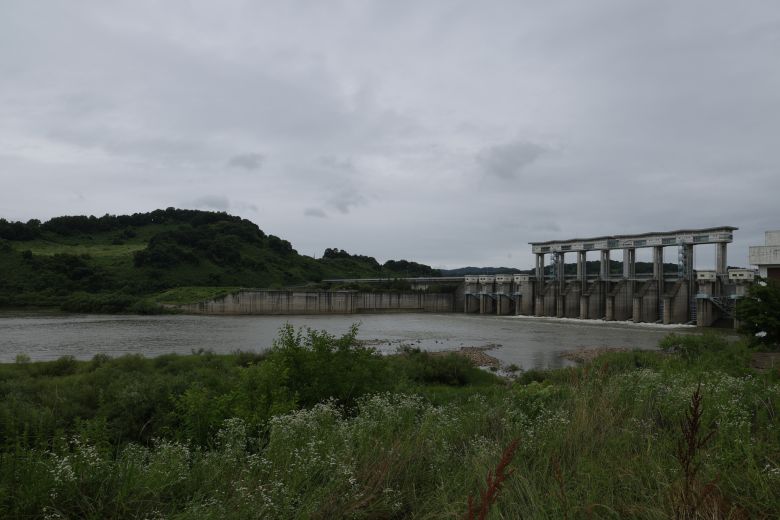 25일 오후 경기도 연천군 군남홍수조절댐에서 임진강 상류 물이 방류되고 있다. 연합뉴스 |