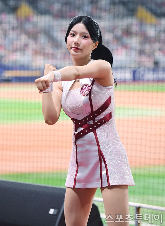 [스포츠투데이 권광일 기자] 2025 신한은행 SOL Bank KBO리그 KIA 타이거즈와 키움 히어로즈의 경기가 25일 서울 고척스카이돔에서 열렸다. 키움 치어리더 윤지나가 응원을 하고 있다. 2025.06.25. [스포츠투데이 권광일 기자 sports@stoo.com]이 기사의 카테고리는 언론사의 분류를 따릅니다.0공유하기