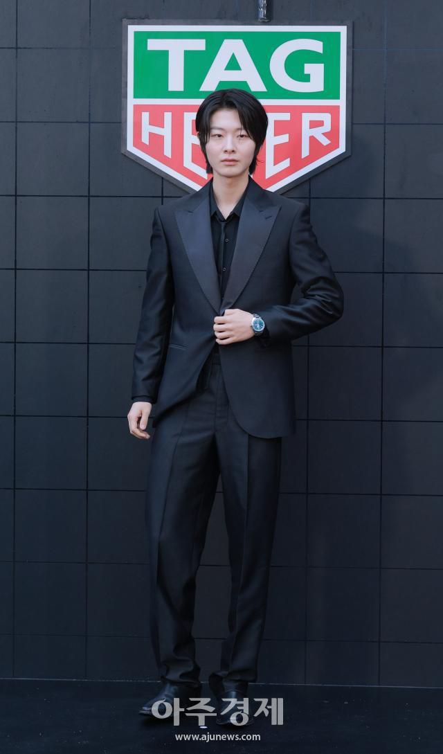 모델 최현준이 25일 서울 오후 마포구 문화비축기지에서 열린 '태그호이어 갈라 디너 이벤트' 기념 포토콜 행사에 참석해 포즈를 취하고 있다. 2025.06.25