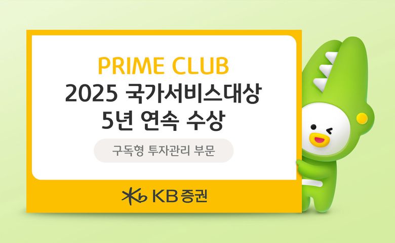 KB증권㈜의 PRIME CLUB(프라임클럽)이 ‘2025 국가서비스대상’ 구독형 투자관리 부문 대상에 선정됐다. 5년 연속이다.