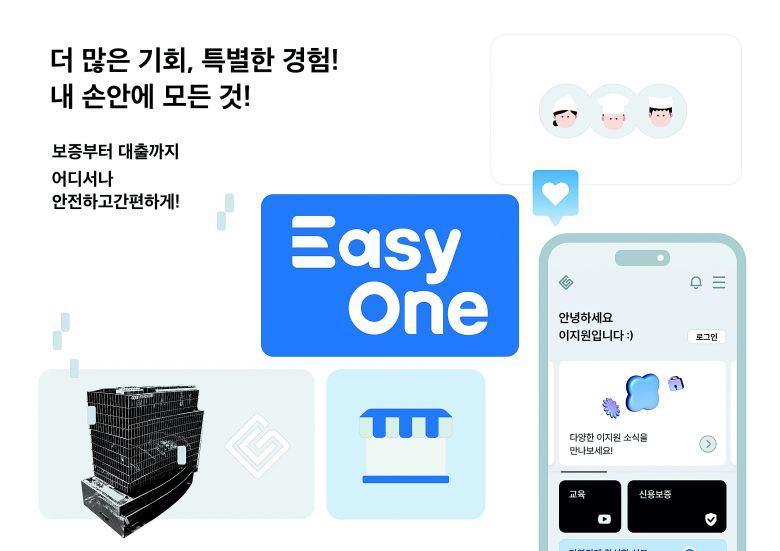 2023년 4월 본격 시행된 이지원은 보증 신청부터 심사, 약정, 대출 실행까지 모든 절차를 하나의 앱에서 처리할 수 있는 전국 최초의 공공 신용보증 플랫폼이다. 기존 보증 신청은 고객이 여러 번 신용보증재단 및 은행 영업점을 직접 방문하고 서류를 제출한 후 대출까지 평균 10일 이상 소요되는 복잡한 과정이었다. 하지만 이지원은 △비대면 △무서류 △무방문 방식을 실현하며 1일 내 보증 실행이 가능해졌다.