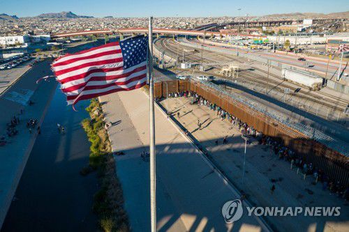 미국·멕시코 국경 지대에 걸린 성조기