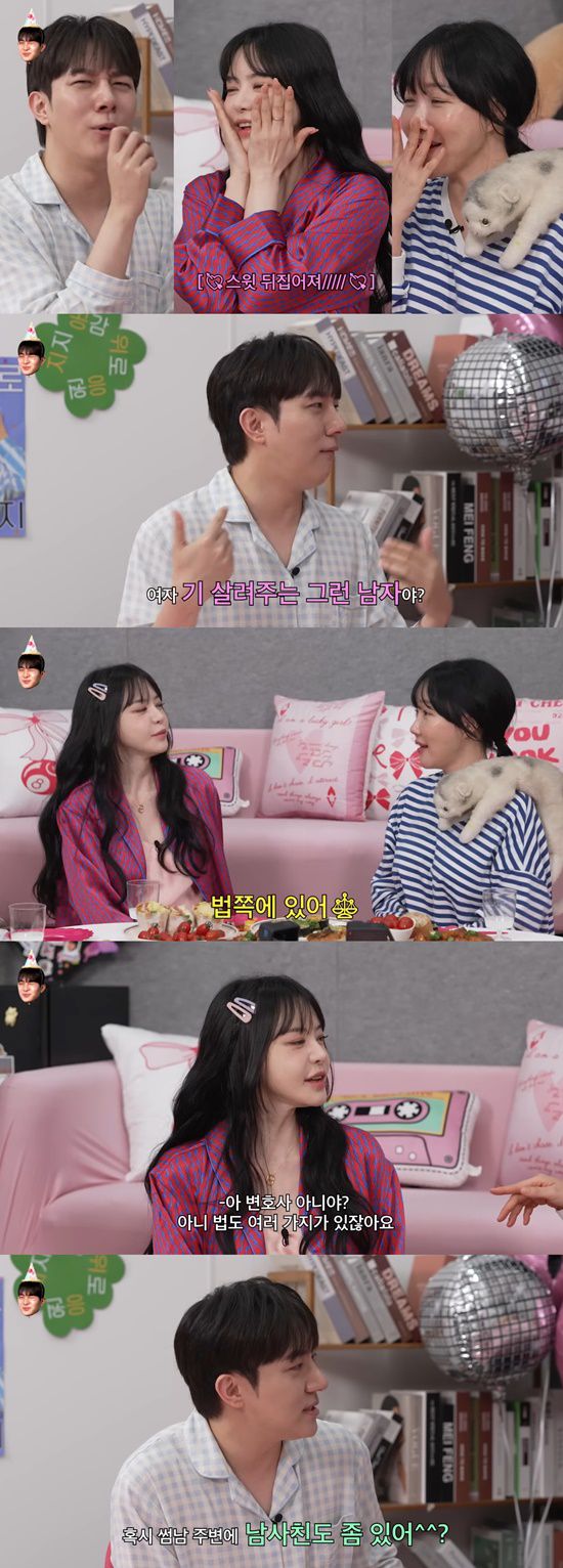 그는 현재 결정사를 통한 썸이 진행중이라며 "파자마도 썸남이 사줬다. 92년생이고 법쪽에 있다"고 밝혀 눈길을 끌었다.
