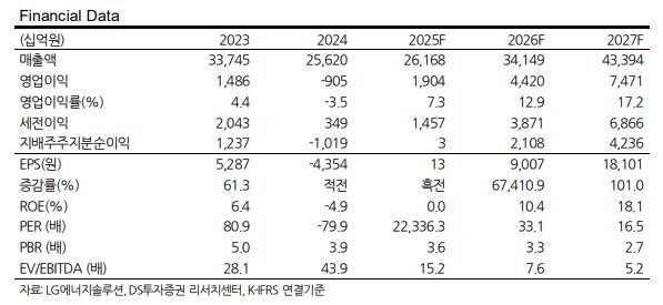 최 연구원은 “2025년 매출과 영업이익은 각각 2.1%, 231% 늘어난 26조1000억 원과 1조9000억 원을 전망한다”며 “소형 배터리는 선도 EV 업체 신차 효과와 하반기 4680 공급 개시로 턴어라운드가 예상된다”고 설명했다.