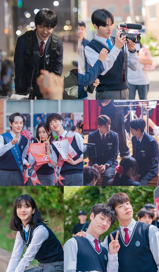 이날 '러닝메이트'의 화기애애한 촬영장 뒷모습이 공개되기도 했다. 진실과 거짓이 뒤엉킨 학생회장 선거 전쟁에서 뜨겁게 맞붙은 영진고 6인방. 노세훈의 롤러코스터 같은 격변을 풀어낸 윤현수를 비롯해 엎치락뒤치락 반전의 승부를 펼친 두 학생회장 후보 곽상현 역 이정식과 양원대 역 최우성, 두 캠프의 치트키로 활약한 윤정희 역 홍화연과 하유경 역 김지우, 그리고 분위기 메이커 박지훈 역 이봉준까지 미쳐야 이기는, 이기면 진짜가 되는 선거 전쟁에 공감과 몰입을 배가한 신예 배우들의 시너지가 담겼다.