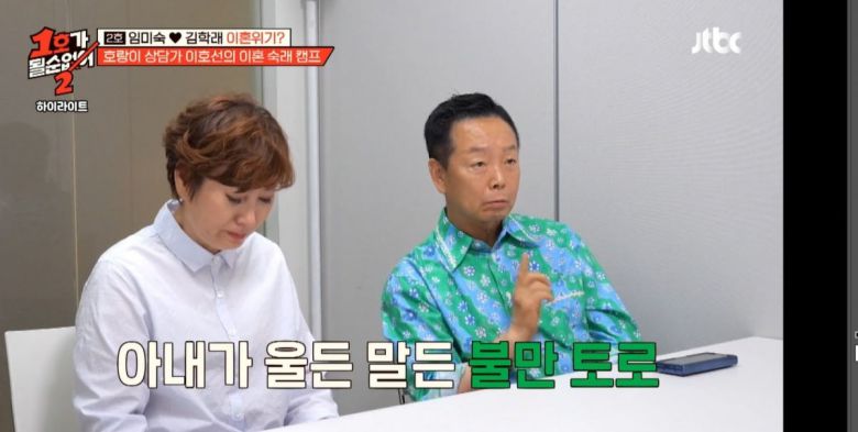 임미숙, 김학래 부부가 '이혼 1호' 위기에서 이호선 교수에게 부부 상담을 받았다. 임미숙은 울컥해 눈물을 흘리기도 했다.