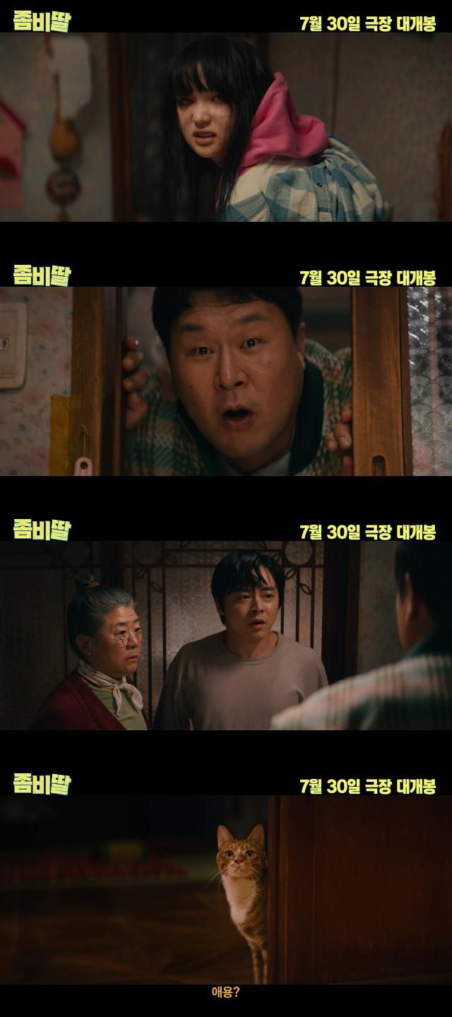 '좀비딸' 측은 개봉일 소식과 함께 예고편을 공개했다. 공개된 예고편에서는 감염자와의 접촉을 일체 삼가하라는 안내 방송과 함께 좀비 바이러스에 감염된 ‘정환’(조정석 분)의 딸 ‘수아’(최유리 분)의 모습이 드러나 시선을 사로잡는다. 세상에 마지막으로 남은 좀비가 된 딸을 지키기 위해 고향 은봉리로 내려온 ‘정환’. 몰라보게 변해버린 ‘수아’를 보고 놀란 ‘정환’의 친구 ‘동배’(윤경호 분), 너스레로 상황을 모면하는 어머니 ‘밤순’(이정은 분)의 모습이 담겼다.