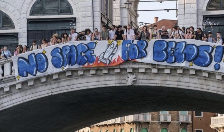이들은 리알토 다리에 "베이조스를 위한 공간은 없다"는 현수막을 내걸고, 산 조르조 마조레 성당 종탑에는 베이조스 이름 위에 'X' 표시가 그려진 대형 현수막을 펼치는 등 결혼 반대 시위를 이어갔다.