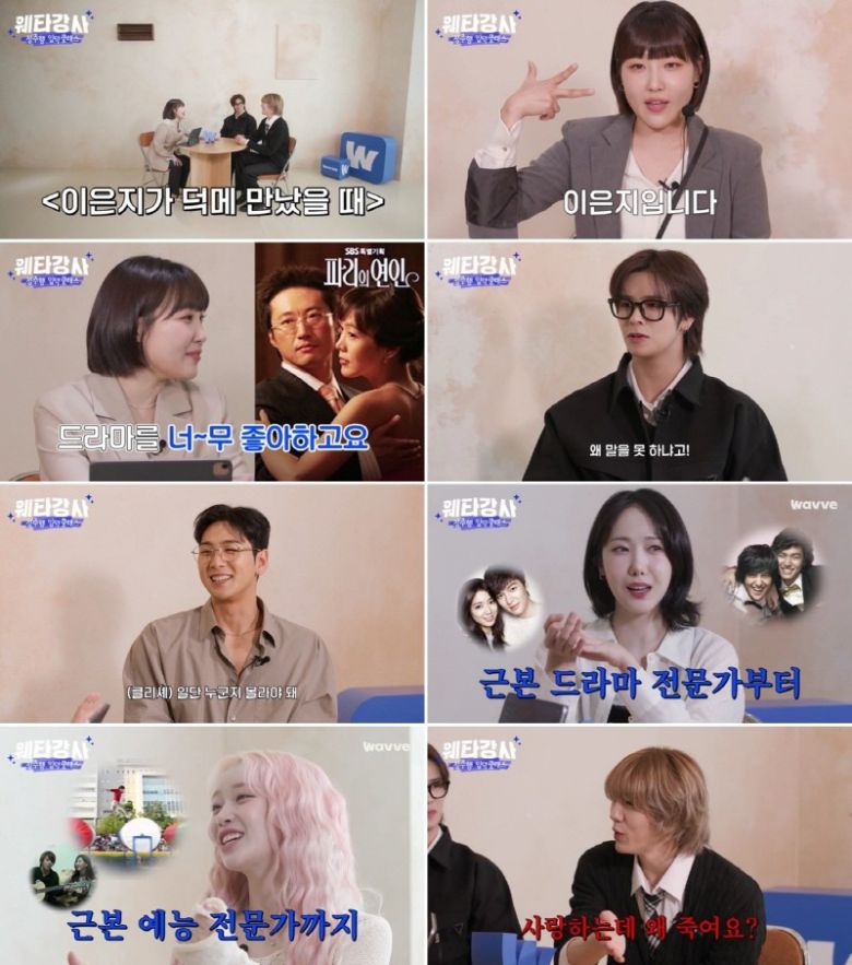 이와 관련 26일 공개된 ‘웨타강사’의 티저 영상에서는 ‘Y2K 교수님’으로 변신한 이은지가 자신의 ‘덕메(덕후 메이트)’를 만나 ‘과몰입 토크’를 폭발하는 모습이 담겨 시선을 사로잡았다. 해당 영상에서 이은지는 “옛날 드라마가 다시 열풍”이라며 드라마 ‘파리의 연인’, ‘발리에서 생긴 일’ 등의 ‘레전드 드라마’를 소환한다. 이와 함께 이은지는 수강생으로 함께한 크래비티 세림&성민, 백호와 함께 “사랑하는데 왜 죽여?”, “(상대가) 일단 누군지 몰라야 돼, ‘여기 어디야?’부터 시작해야 돼” 등의 클리셰를 소개하며, 그 시절 드라마의 ‘필승 공식’을 되짚는 등 웃음을 선사한다.