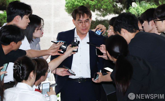 [서울=뉴스핌] 최지환 기자 = 윤석열 전 대통령 부인 김건희 여사 의혹 관련 사건을 수사하는 민중기 특별검사팀 김형근 특검보가 26일 오전 서울 서초구에 마련된 임시 사무실로 출근하고 있다. 2025.06.26 choipix16@newspim.com
