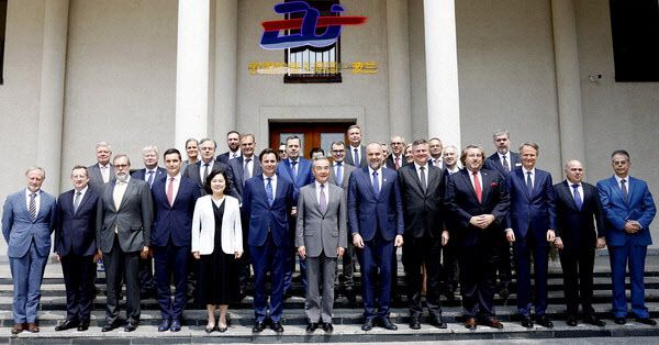 지난 26일 중국 베이징에서 왕이(가운데) 중국 외교부장과 유럽연햡 주중 대사 및 특사들이 만나 기념촬영하고 있다. (사진=중국 외교부) |
