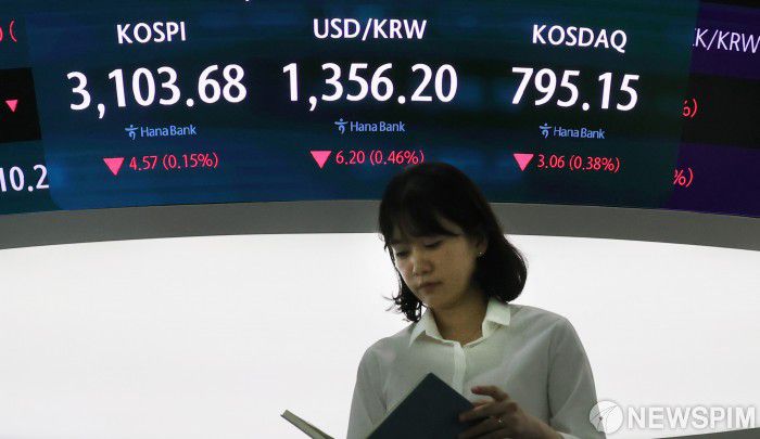 [서울=뉴스핌] 양윤모 기자 = 26일 오전 코스피가 전장 종가보다 4.57 포인트(0.15%) 하락하며 3,103.68로, 코스닥은 3.06포인트(0.38%) 하락한 795.15로 시작한 가운데, 서울 중구 하나은행 딜링룸에서 직원들이 업무를 보고 있다. 서울외환시장에서 원·달러 환율은 전장 대비 6.20원 하락한 1,356.20원에 거래를 시작했다. 2025.06.26 yym58@newspim.com