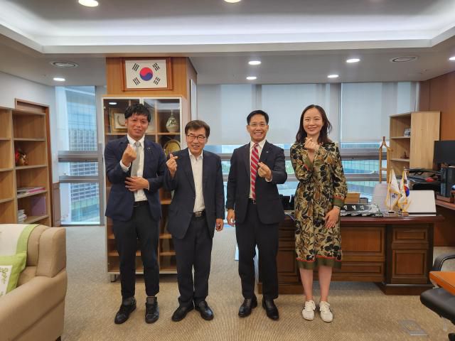 전형식 정무부지사 접견(왼쪽부터 응우옌 선 응옥 베트남 박장성 경제과장, 전형식 충남도 정무부지사, 모리 카즈키 일본 구마모토현 국제과 주임주사, 쉬이슈 중국 상하이시 자딩구 외사판공실 주임과원[사진=충남도] |