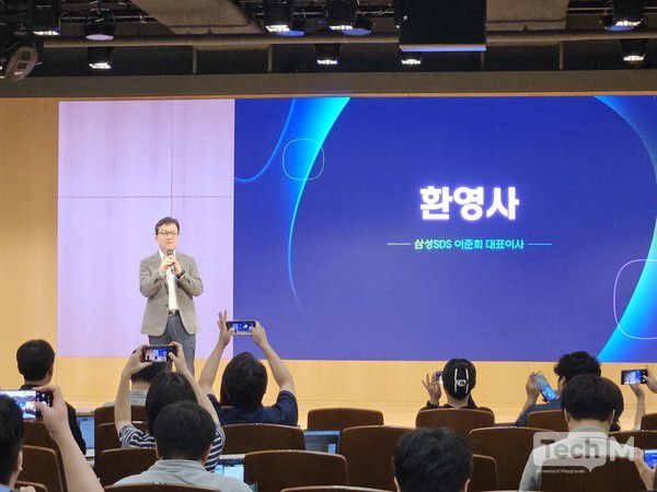 이준희 삼성SDS 대표이사가 26일 삼성SDS 잠실캠퍼스에서 미디어데이를 열고 브리핑하고 있다. /사진=임경호 기자 |