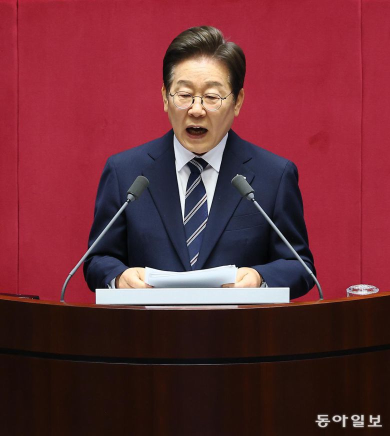 이재명 대통령이 26일 국회 본회의장에서 취임 후 첫 추가경정예산(추경) 시정연설을 하고 있다. 2025.6.26. 대통령실사진기자단/송은석 기자 silverstone@donga.com