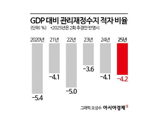 새 정부가 제출한 30조5000억원 규모의 이번 추경안이 국회를 통과하면 GDP 대비 관리재정수지 적자 비율은 2.8%에서 4.2%로 확대돼 재정준칙 상한선(3%)을 넘기게 된다. 팬데믹(세계적 대유행) 대응을 위해 재정지출을 크게 늘린 2020년 이후 5년간 재정준칙이 지켜진 적은 단 한 해도 없었다.