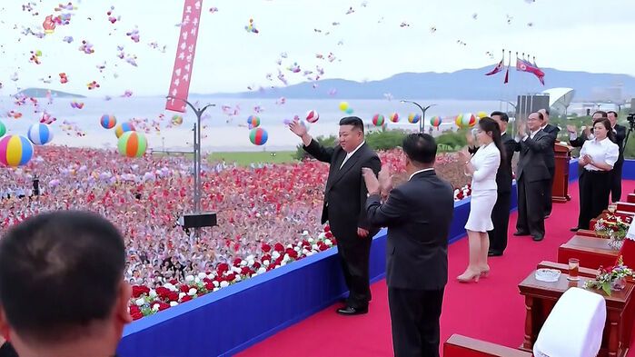 김정은은 부인 리설주, 딸 김주애와 함께 준공식에 참석했습니다.