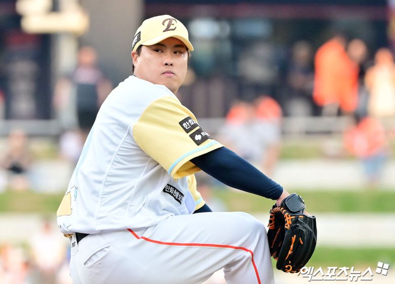 이날 류현진은 유독 흔들리며 3회까지 4실점을 했다. 1회초부터 '괴물 신인' 안현민에게 솔로 홈런을 허용했고, 특유의 노련함으로 위기를 잘 넘기기도 했지만 3회초에도 안현민과 장성우에게 적시타를 맞고 3점을 더 헌납했다.