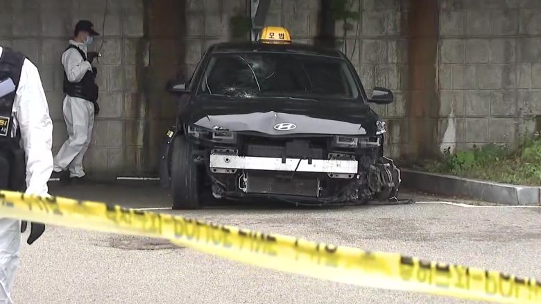 과학수사대원들이 택시 문을 열고 내부를 촬영하는 모습도 보입니다.
