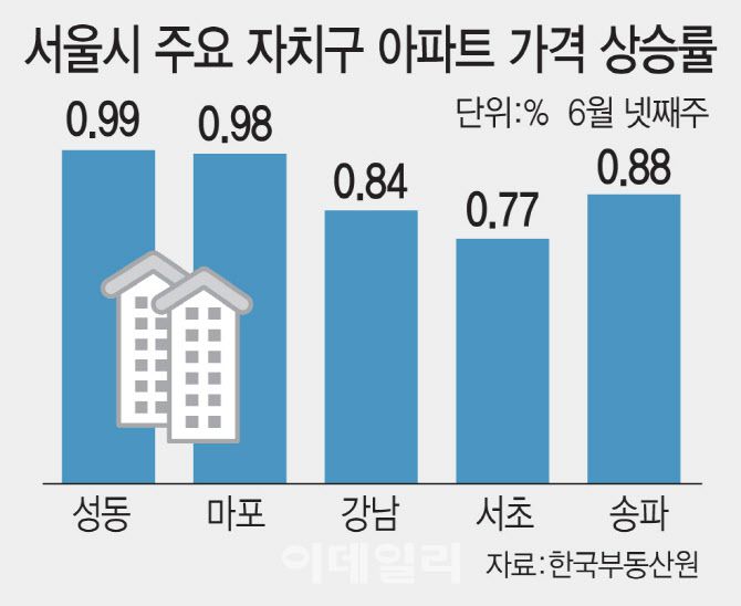 성동·마포 일주일 새 1% 가량 올라, 강남3구 제쳐