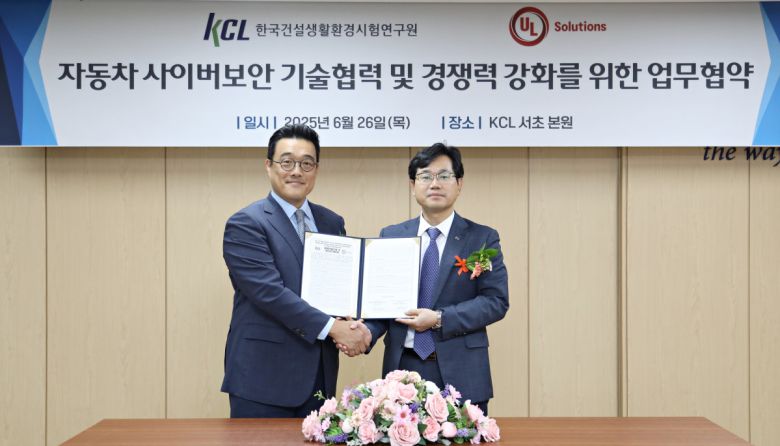 KCL은 26일 서울 서초구 행정동에서 유엘코리아와 ‘자동차 사이버보안 기술협력 및 경쟁력 강화를 위한 업무협약(MOU)’을 체결했다.